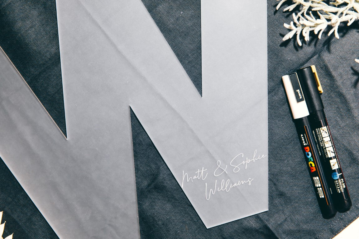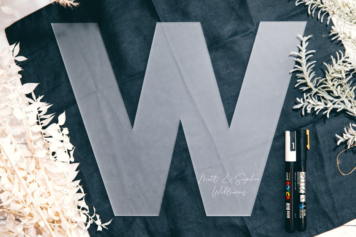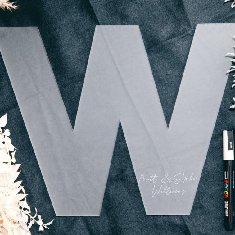 Elevate your wedding décor with our exquisite personalised guest book sign. Available in two sizes – height 30cm and 50cm – to suit your needs (the width depends on the chosen letter) Choose from a variety of finishes for a luxurious touch. Each sign is carefully crafted from 3mm acrylic and personalised to your exact specifications. Please note, pens are not included, but we recommend using a paint marker for a stunning finish. Make a statement with this elegant and tasteful addition to your special day.