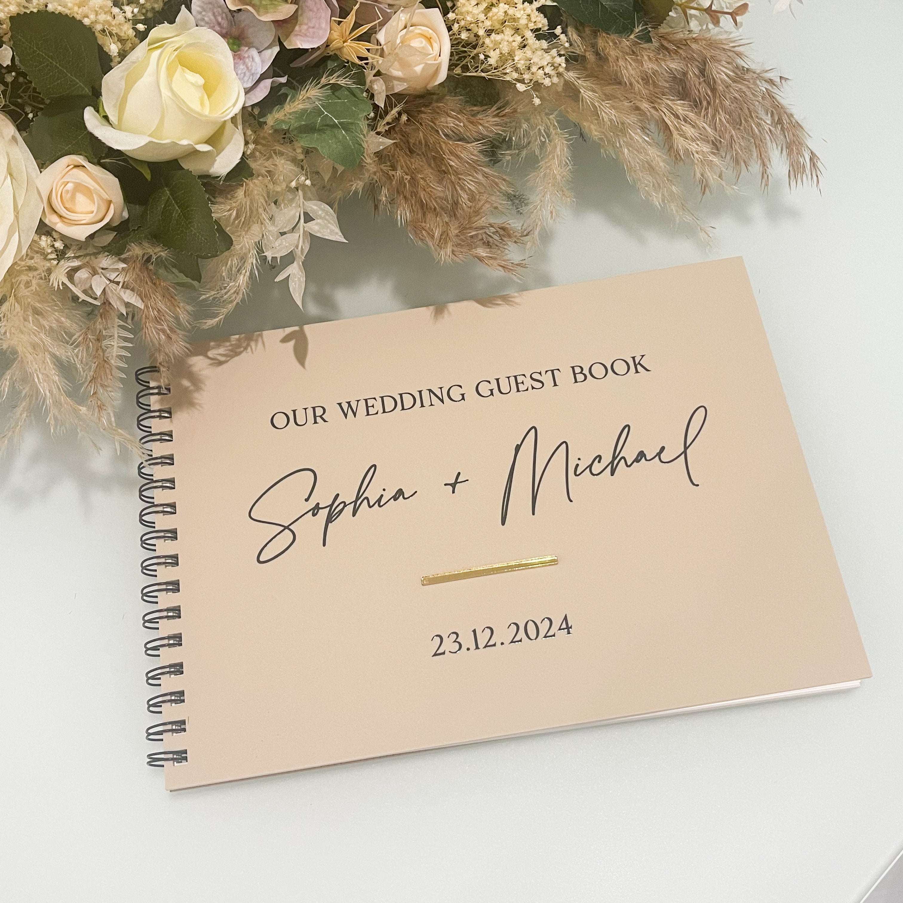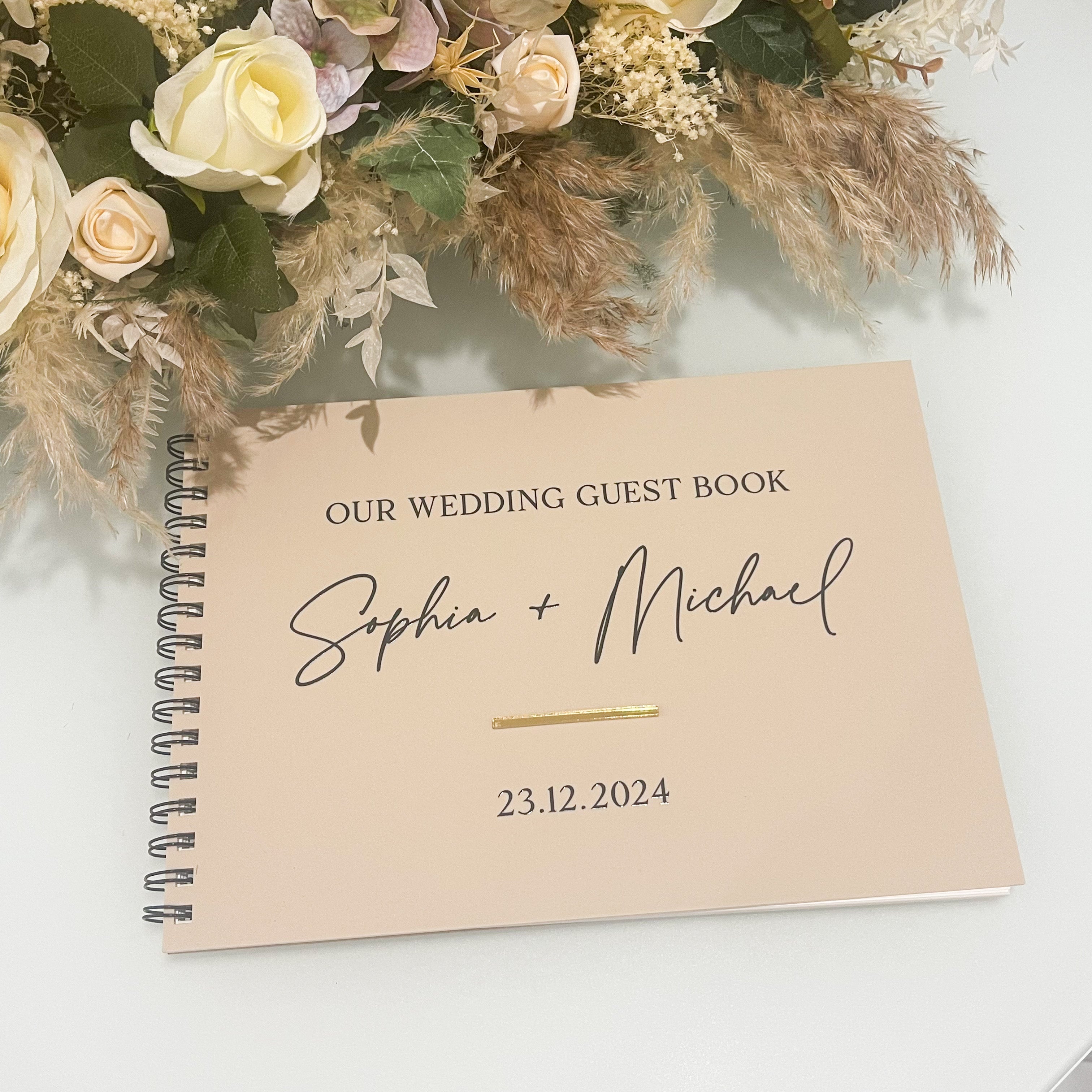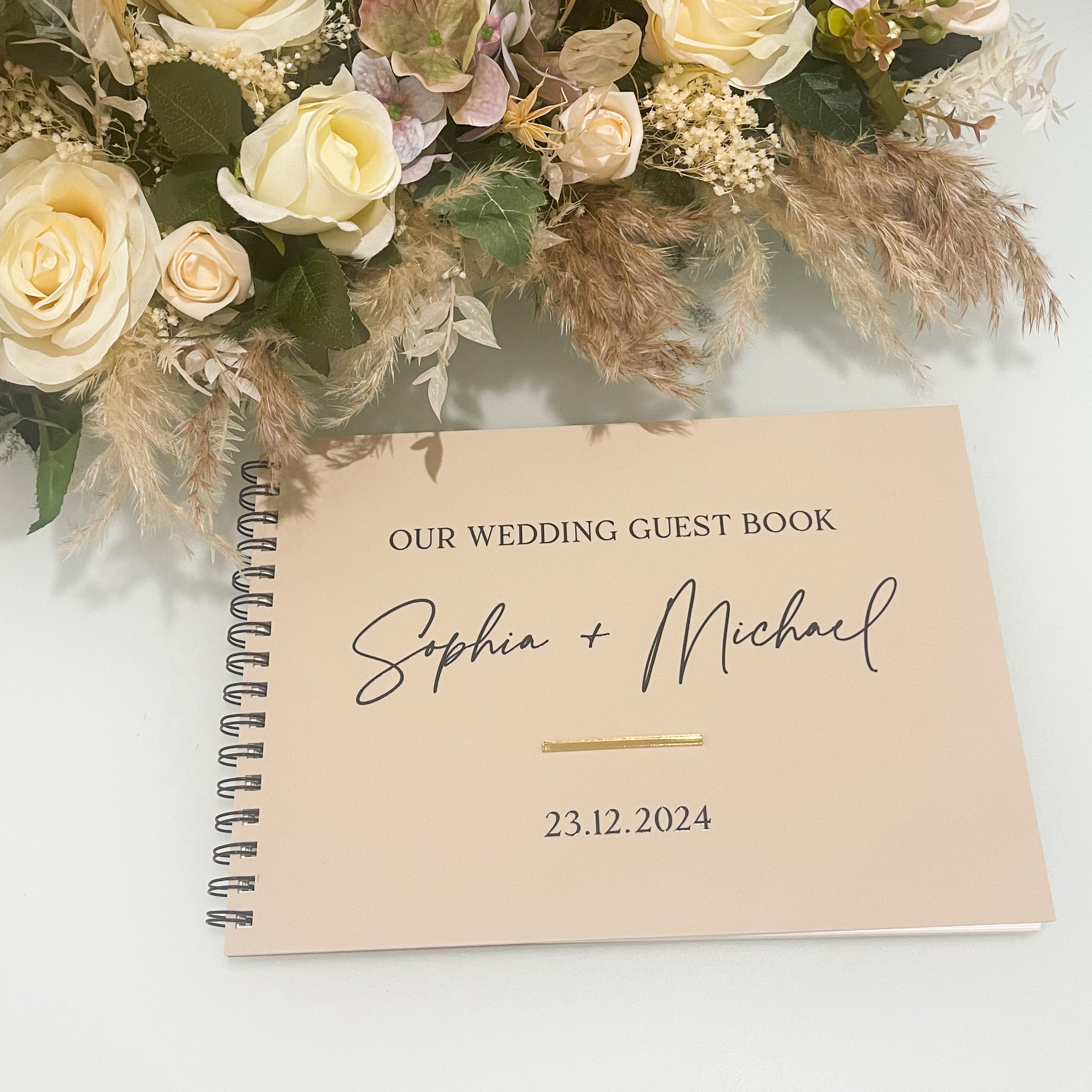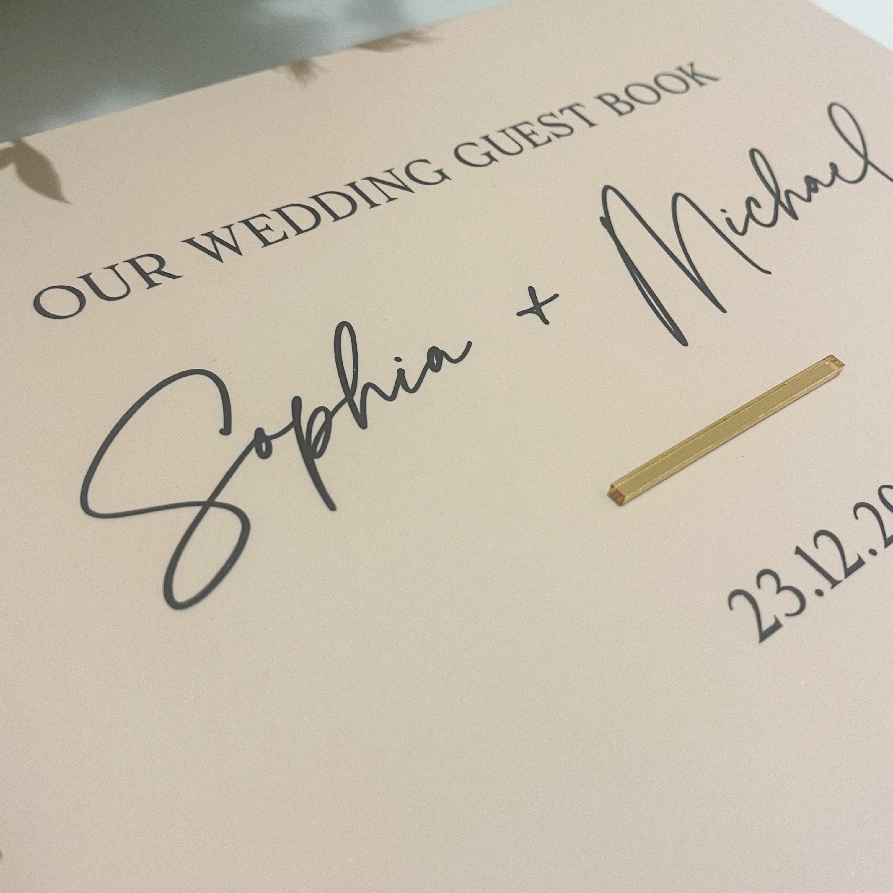 Elevate the elegance of your special day with our handcrafted, customisable guestbook which is available in a selection of finishes with an option of a silver, gold or rose gold mirror underscore to match your wedding aesthetic. Select from four unique designs, each bound with care and filled with 35 sheets or 70 sides of luxurious, 170 GSM paper. The front features a meticulously UV printed 3mm acrylic design, while the back showcases a sketchbook-style piece. Every cover is tailored to your specifications and available in a variety of premium materials.