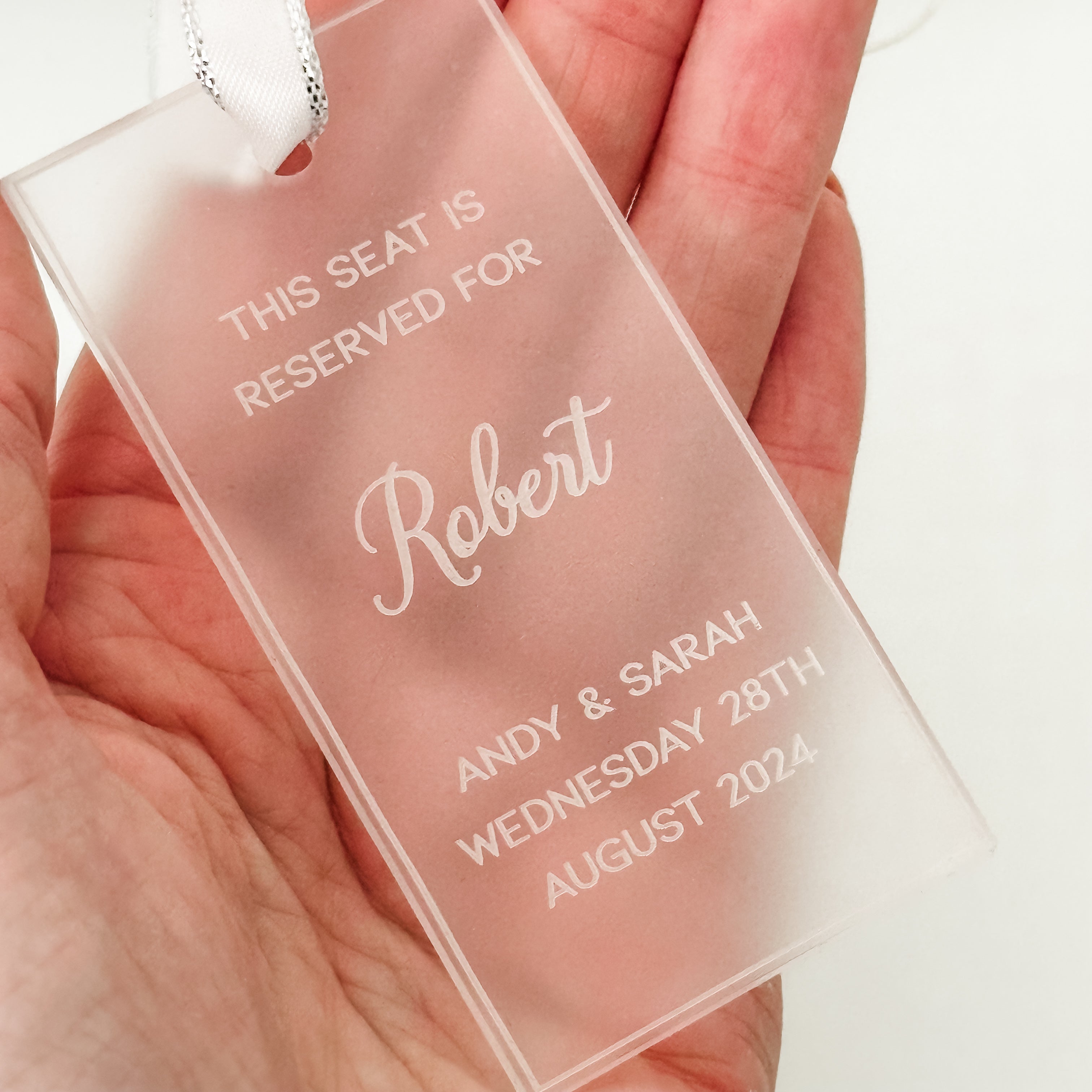 • These exquisite engraved seating tags are perfect for your bridal party during the ceremony or church service. They add a touch of sophistication and ensure that your VIP guests have their designated seats
