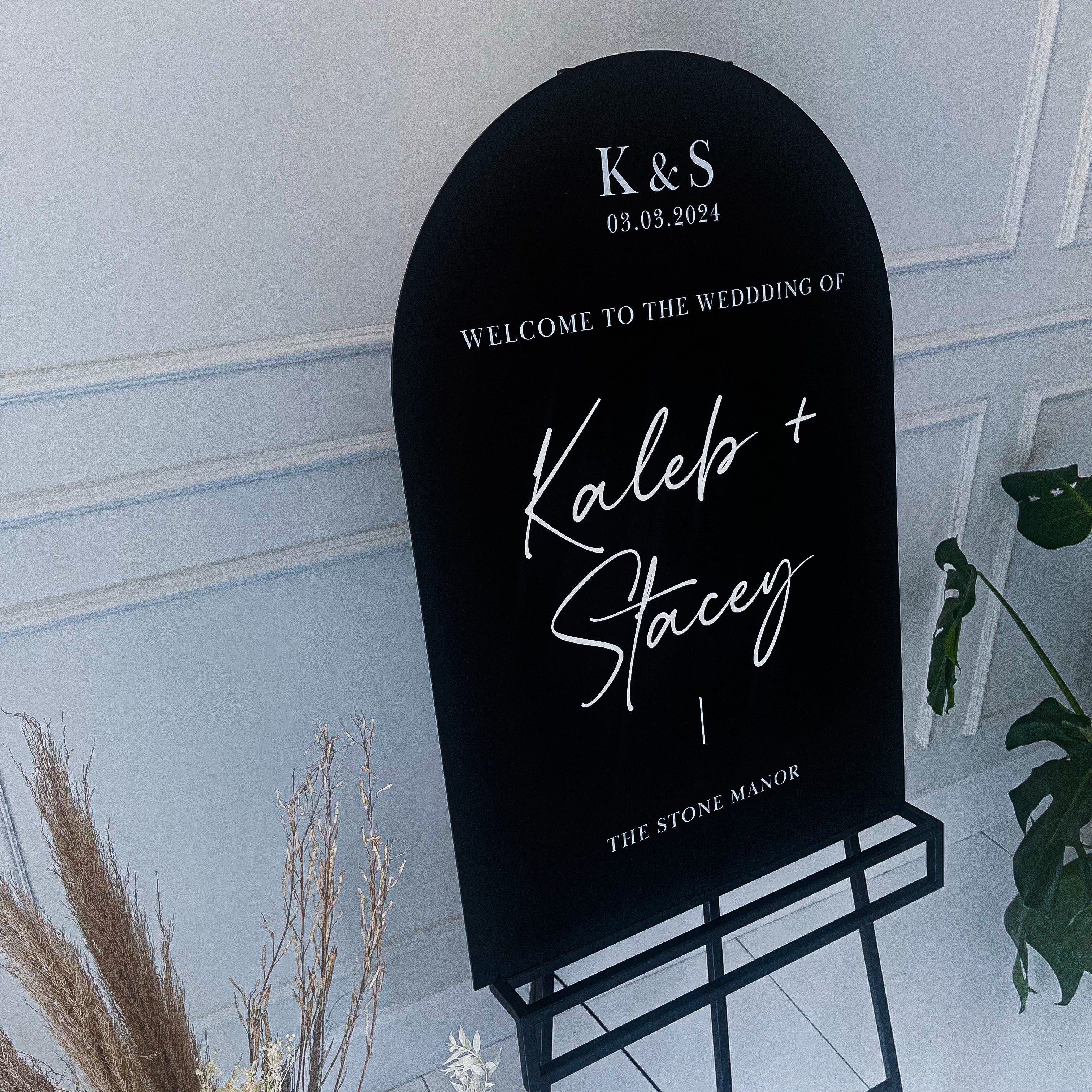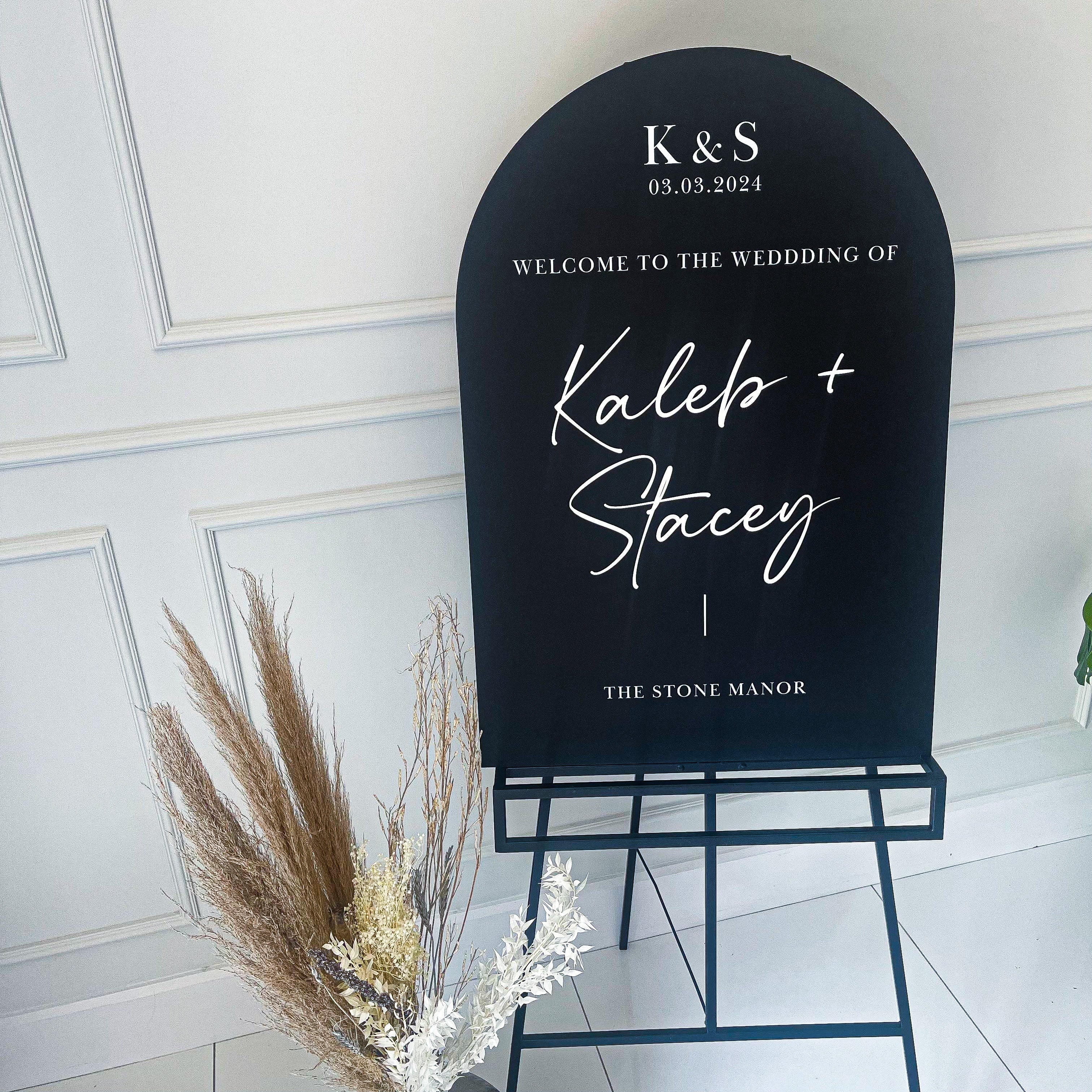 Introducing our exquisite black & white acrylic dome top wedding welcome sign. Crafted with care, this monochrome statement piece is available in various colours, shapes and sizes. Personalise it with your own wording to make it uniquely yours. To compliment your elegant wedding décor, consider pairing it with a matching table plan. For more luxurious options, please explore our other listings.