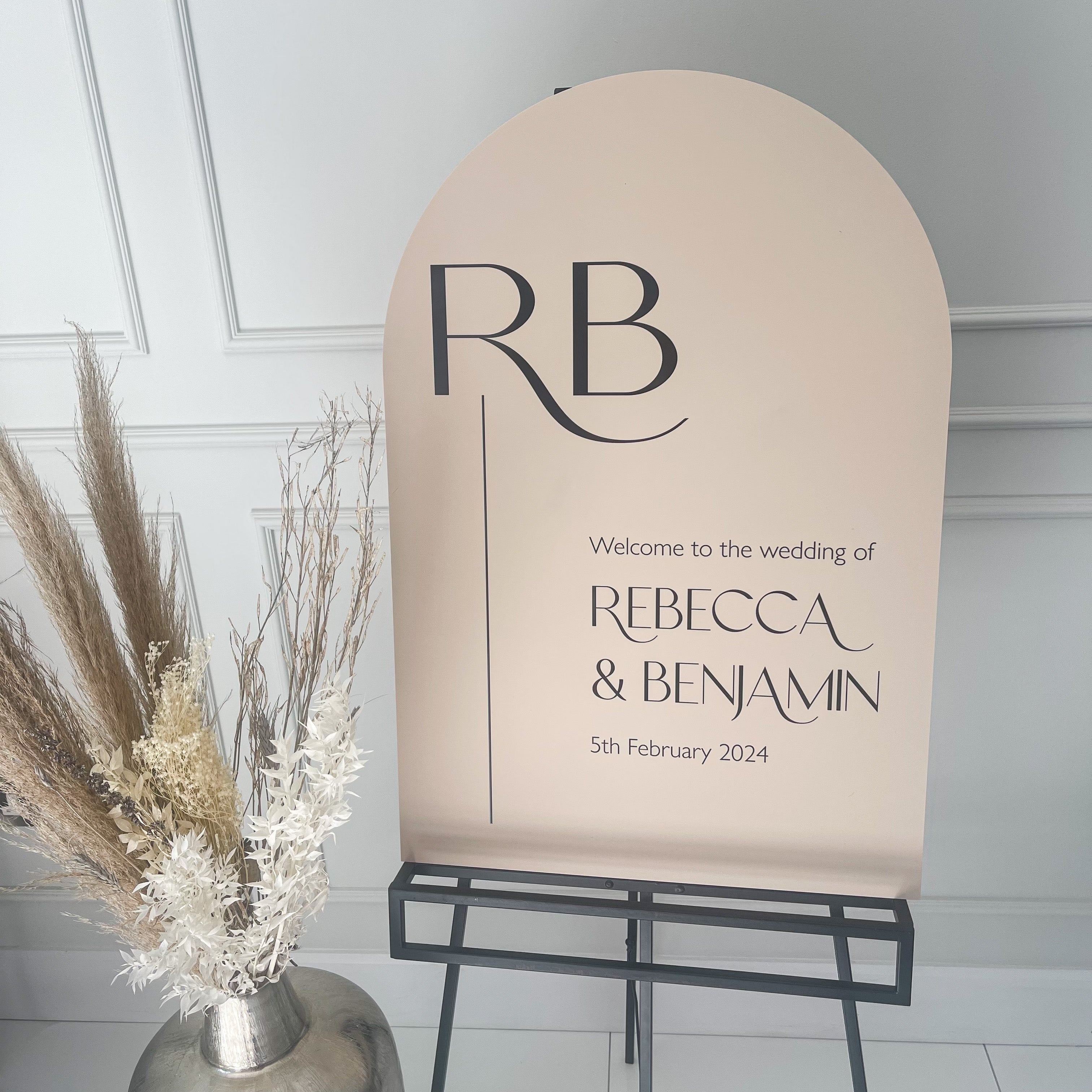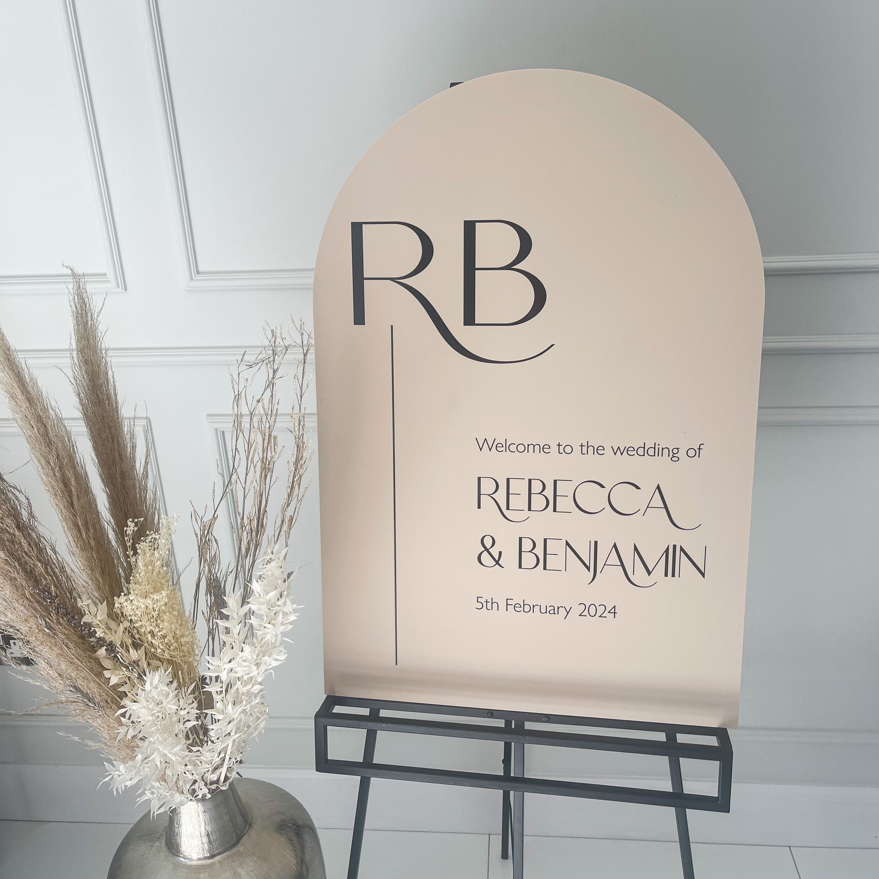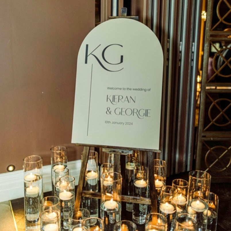 Introducing our dome top wedding welcome sign, a luxurious statement piece in beige acrylic. Available in different colours, sizes, and shapes, personalise it with your own words for a truly unique addition to your special day. Complete the look with a matching table plan for a cohesive touch.
