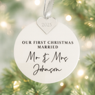 Celebrate your first Christmas as a married couple with our exquisite personalised bauble. Measuring 8cm/3.15" in diameter, this beautiful piece is crafted from 3mm acrylic and mirror acrylic, available in a range of finishes including stunning silver, lavish gold, or romantic rose gold with an engraved heart. A luxurious touch is added with a delicate grey ribbon, included separately.