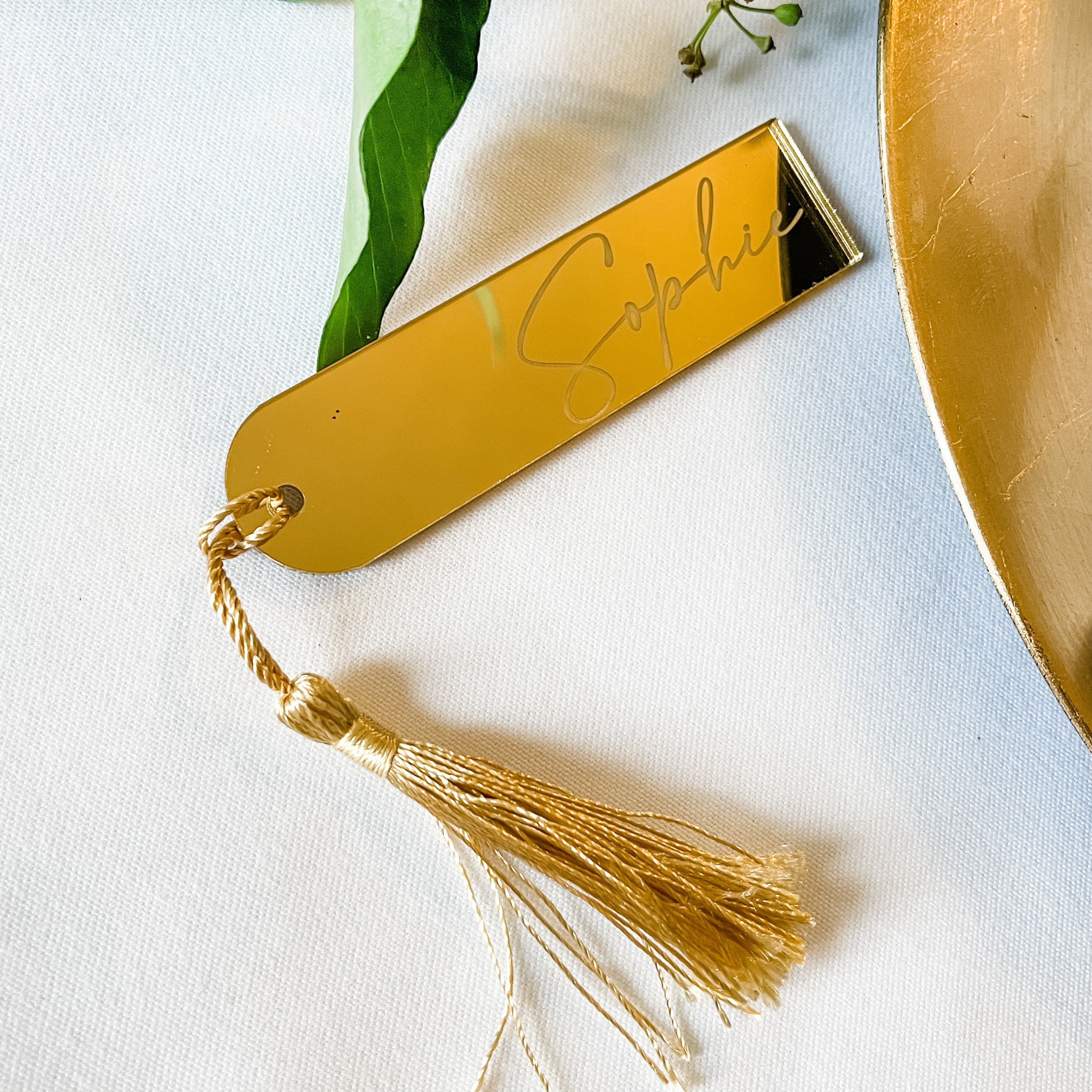 Experience the elegance of our mirror acrylic place name with tassel, expertly engraved with luxurious precision. Discover our vast selection of materials, including the popular frosted acrylic, which reveals its full beauty when contrasted against a darker background. With a range of fonts to choose from, personalise your event with sophistication and refinement.