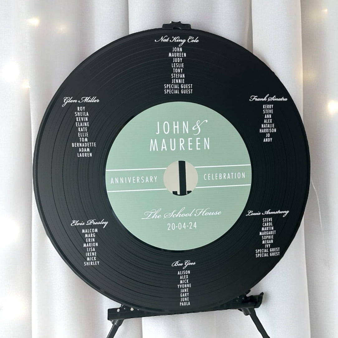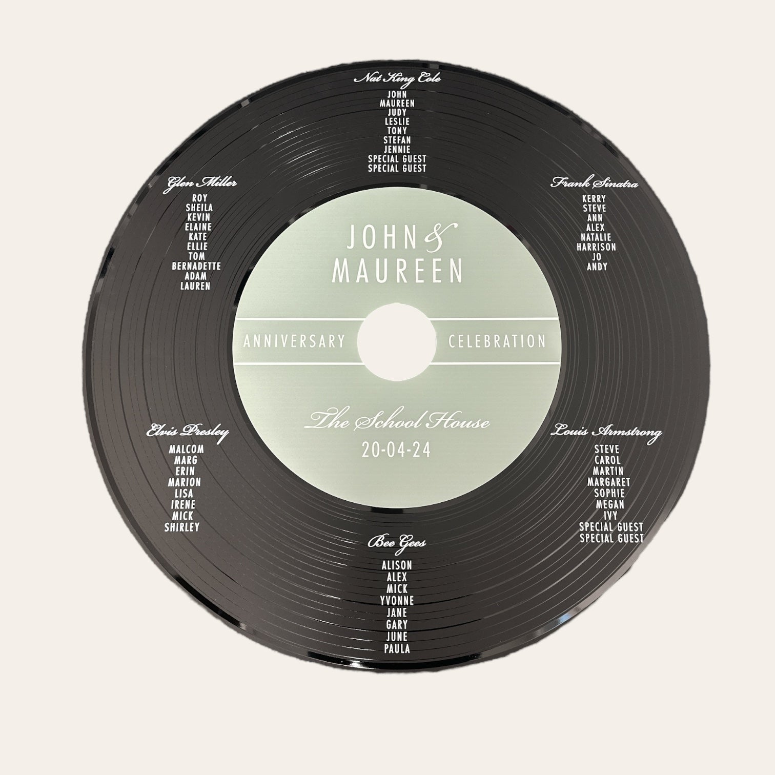 Unleash the rhythm of love with our vinyl record wedding table plan. This music-themed masterpiece is crafted from exquisite acrylic is available in 2 sizes and offers a wide selection of colour inserts. Perfect for setting the tone of elegance and harmony on your special day. Combine it with our other accessories to perfectly compliment this luxurious centrepiece.