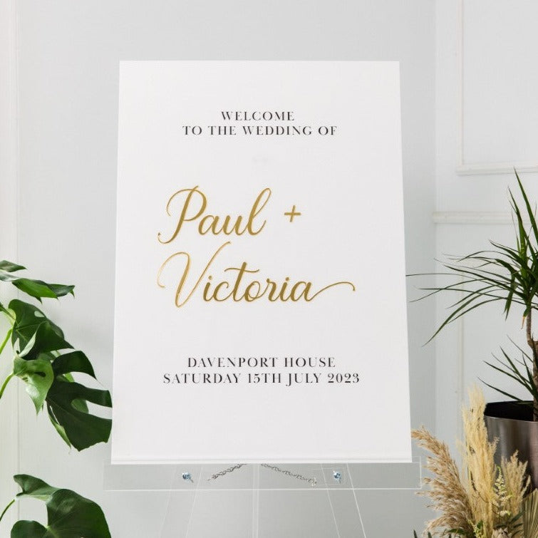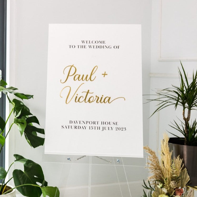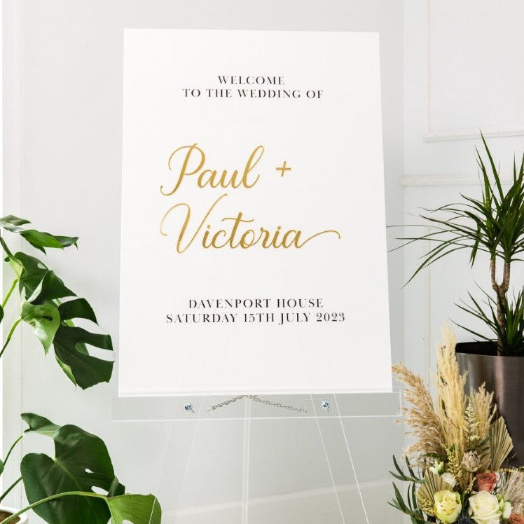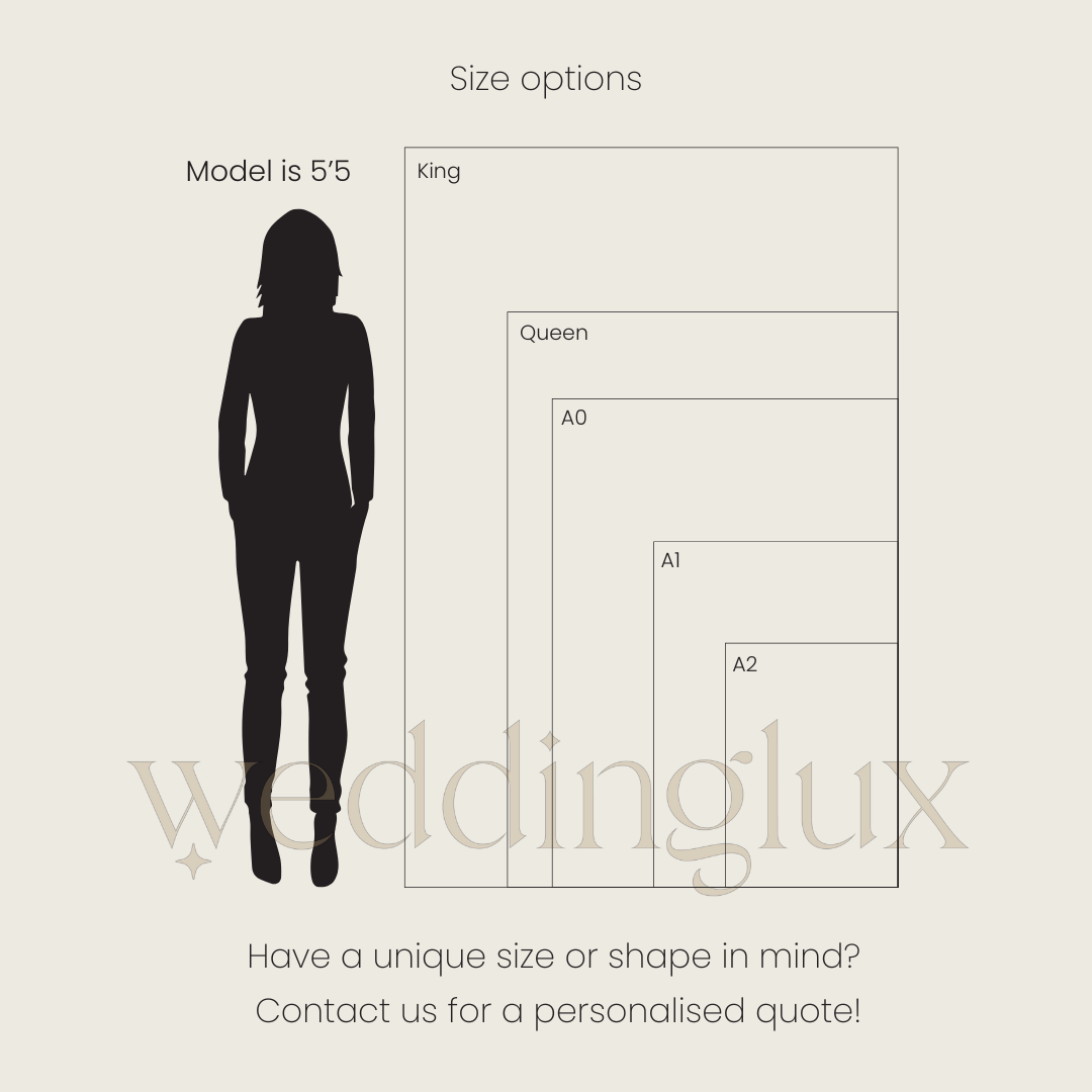 This elegant welcome sign is enhanced with striking mirror accents, adding a touch of sophistication to any venue. Available in various colours, shapes, and sizes, personalise it with your own wording for a truly unique and exclusive piece. Welcome visitors in style with this luxurious product and consider pairing it with a matching table plan.