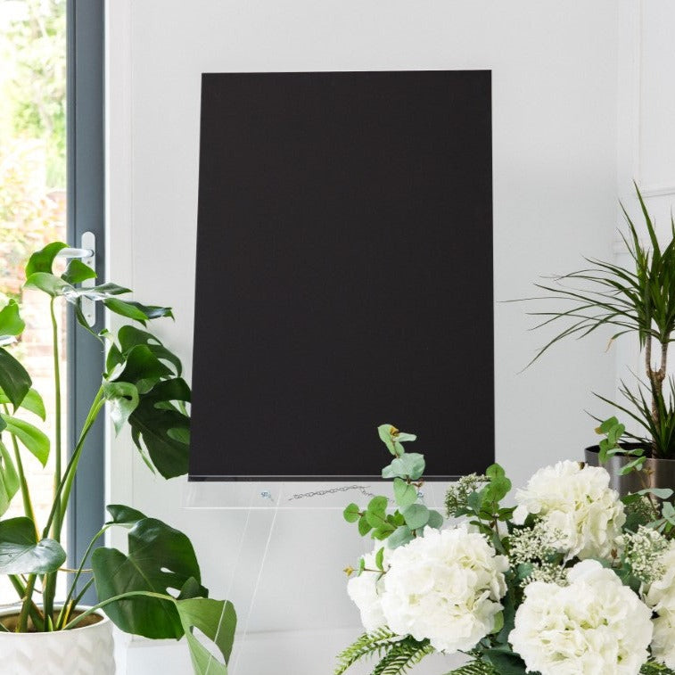 Indulge in the luxury of our acrylic blank signs, available in various sizes. Choose from an array of sophisticated colours, such as frosted, beige, black, white or clear, all made with premium 3mm acrylic. Perfect for any event displaying your text in a tasteful and exclusive manner. Large blanks are available up to 1.8 metres upon request.