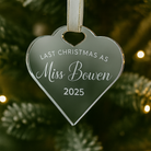 Elegantly engraved for the bride-to-be, this stunning Christmas bauble comes in a range of exquisite finishes. Its approximate diameter of 8cm and 3mm acrylic material add a touch of sophistication. And for that finishing touch, a basic grey ribbon is included separately.