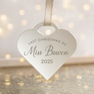 Elegantly engraved for the bride-to-be, this stunning Christmas bauble comes in a range of exquisite finishes. Its approximate diameter of 8cm and 3mm acrylic material add a touch of sophistication. And for that finishing touch, a basic grey ribbon is included separately.
