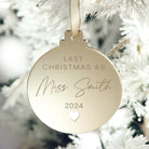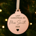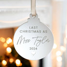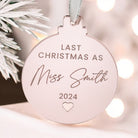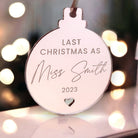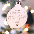 Bride To Be Last Christmas As A Miss Personalised Mirror Bauble