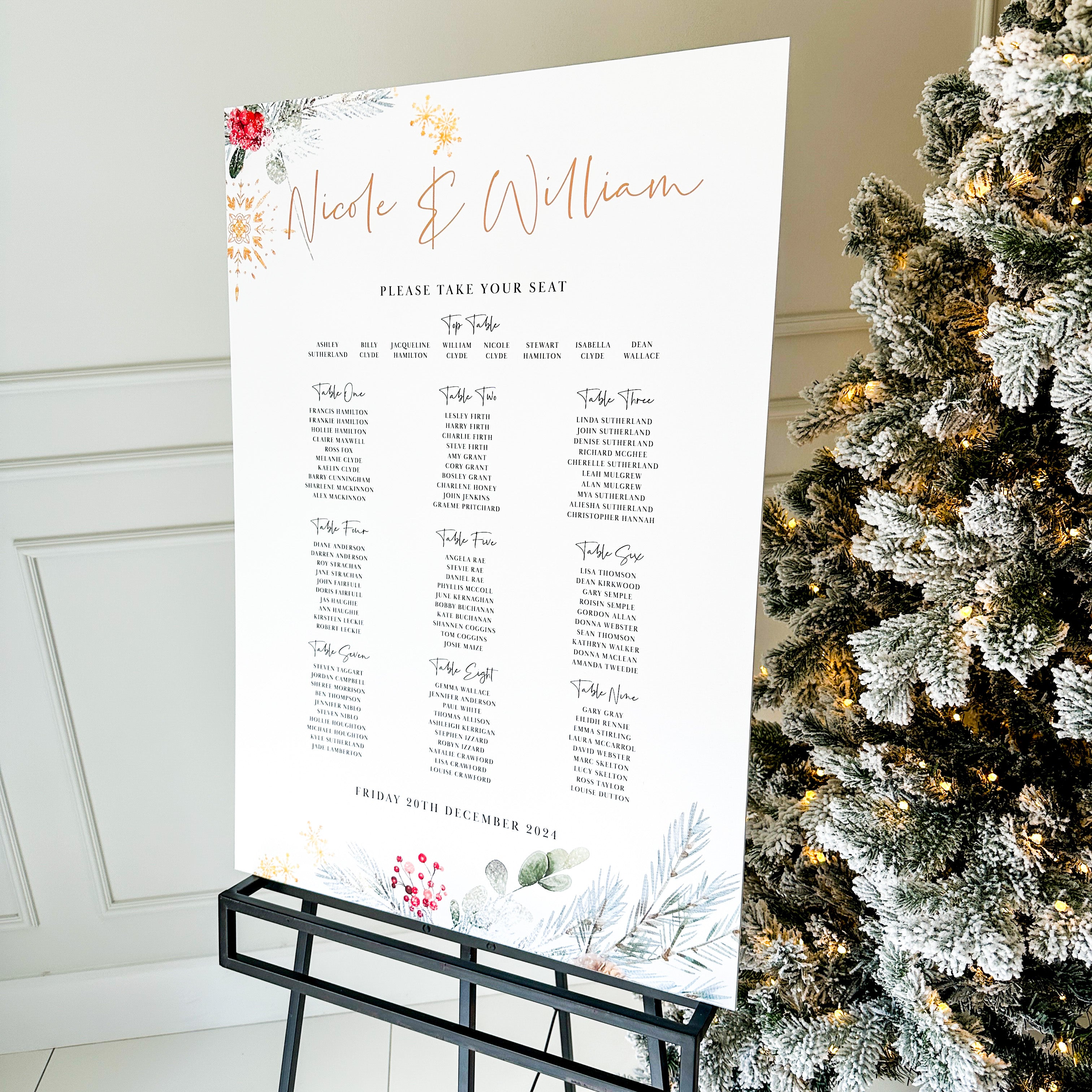 Elevate your festive wedding with our luxury Christmas table plan. Available in various shapes, and sizes, this customisable piece is crafted from premium 5mm Foamex or 3mm acrylic. Make a sophisticated statement on your special day with this exclusive addition.