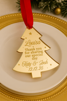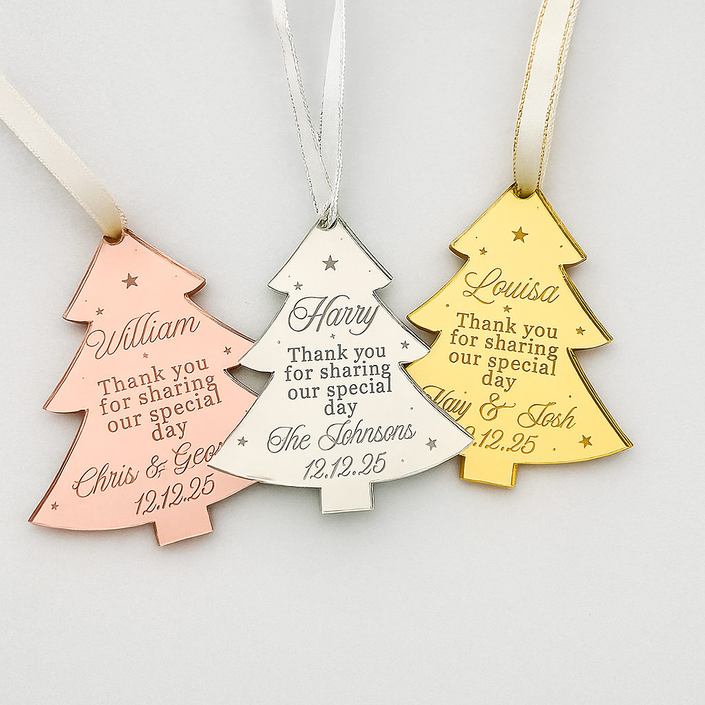 Personalised Wedding Favour Christmas Tree Baubles – Guest Place Names & Thank You Gifts in Silver