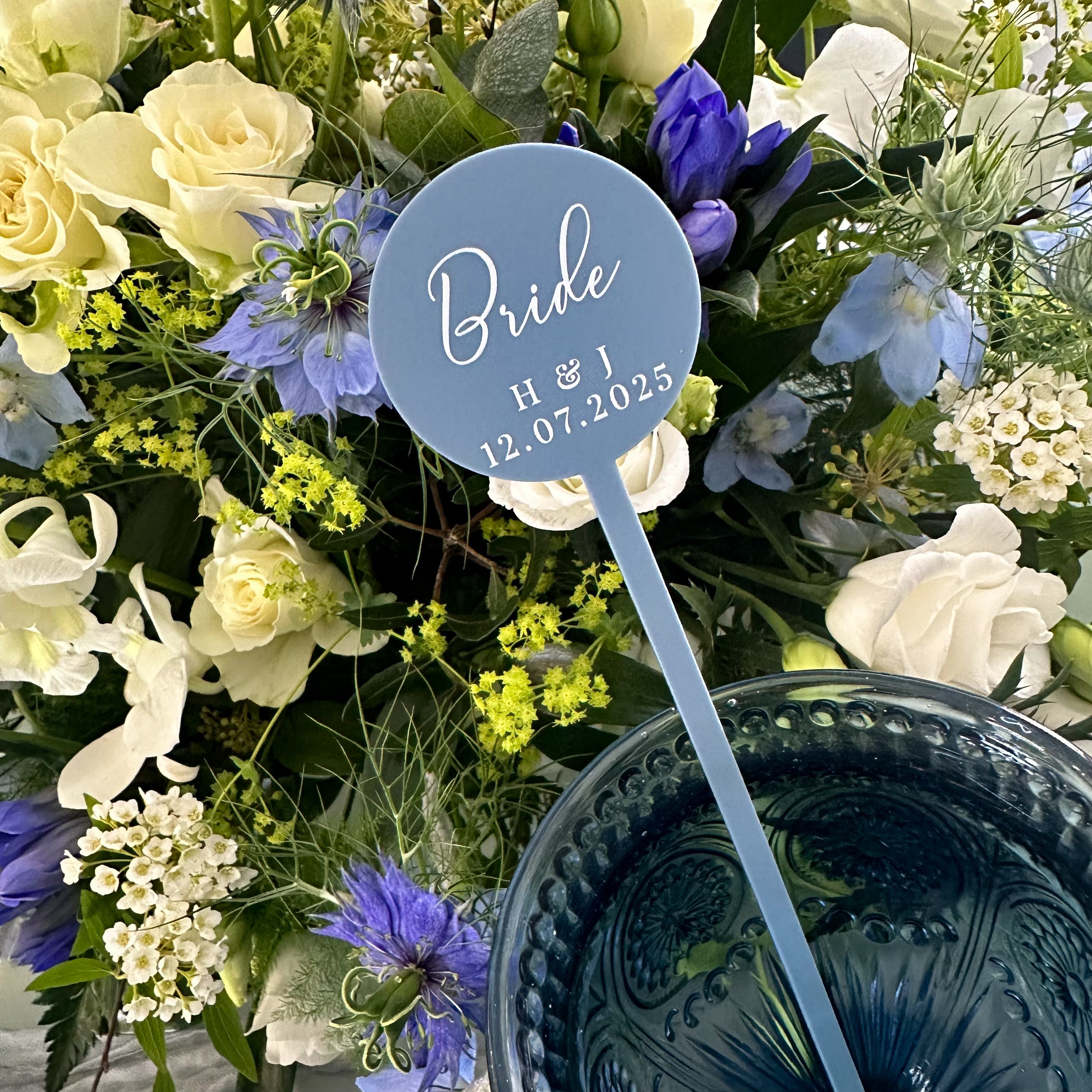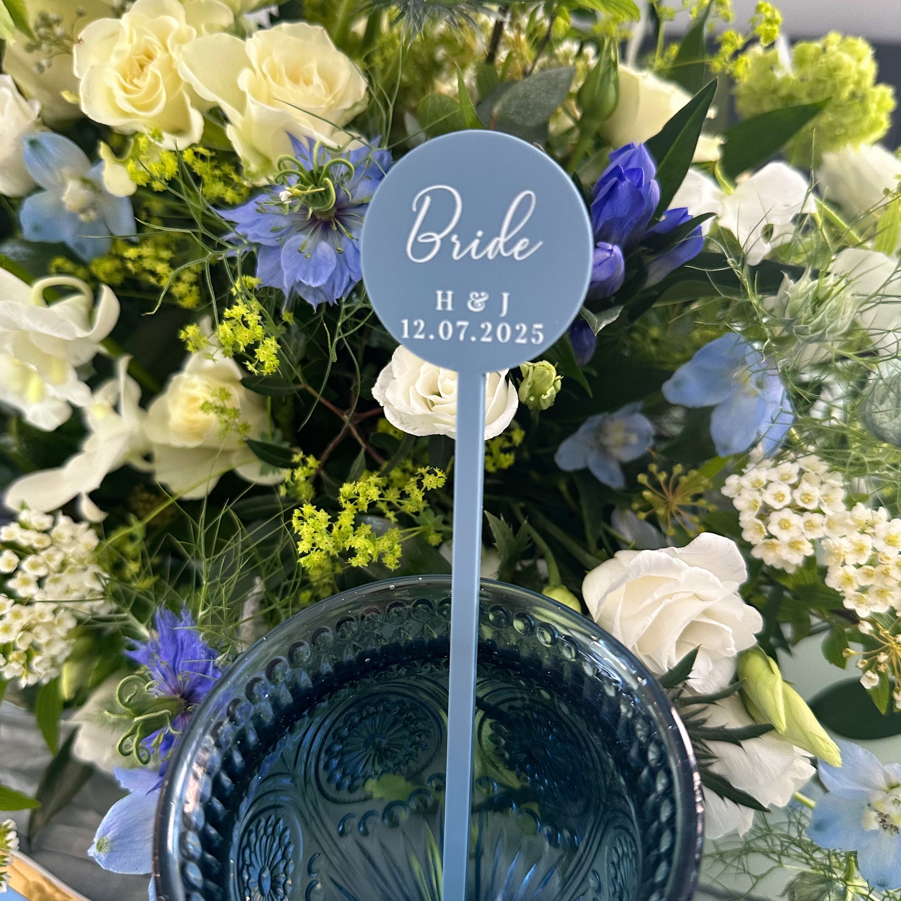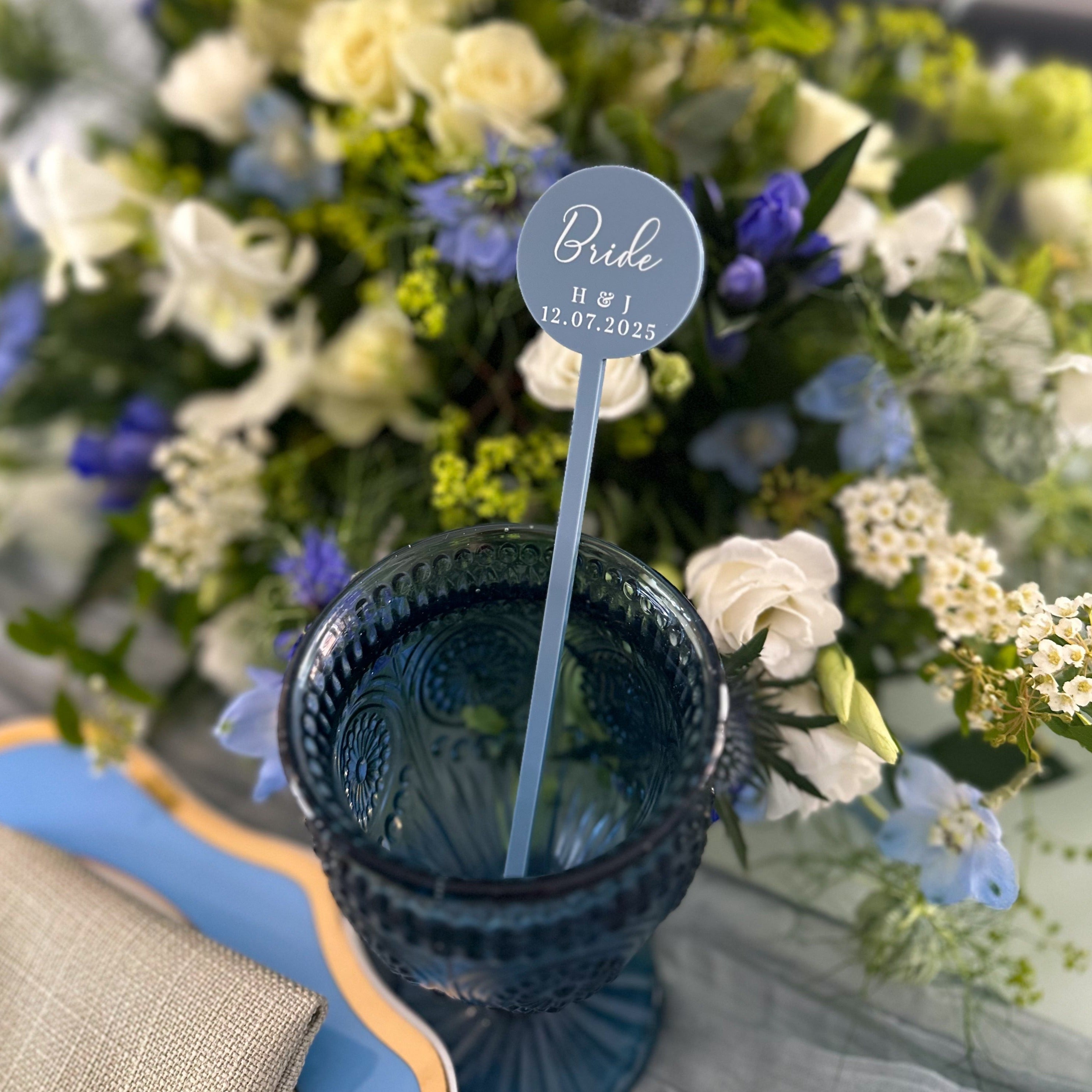 Dusky Blue Personalised Wedding Drinks Stirrers