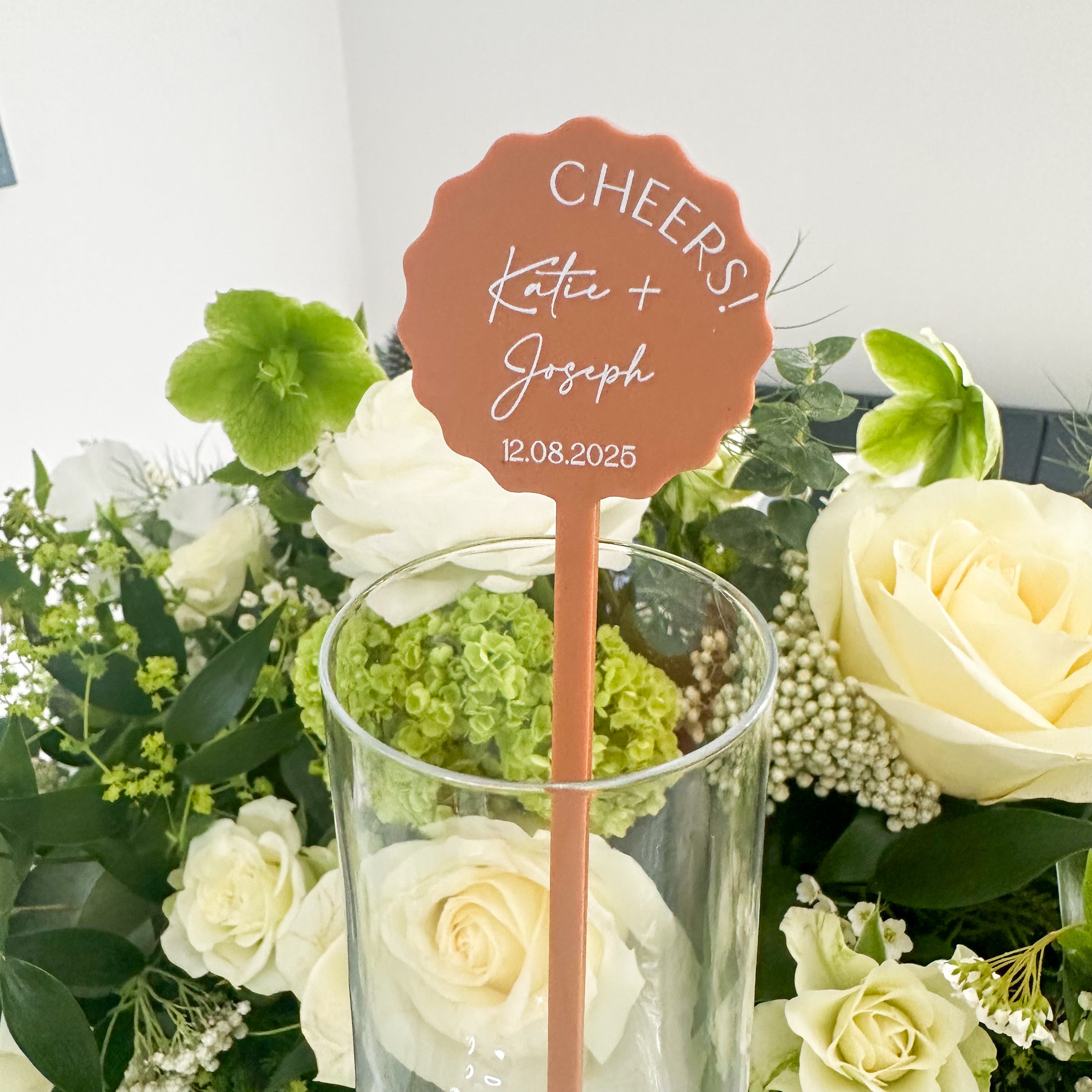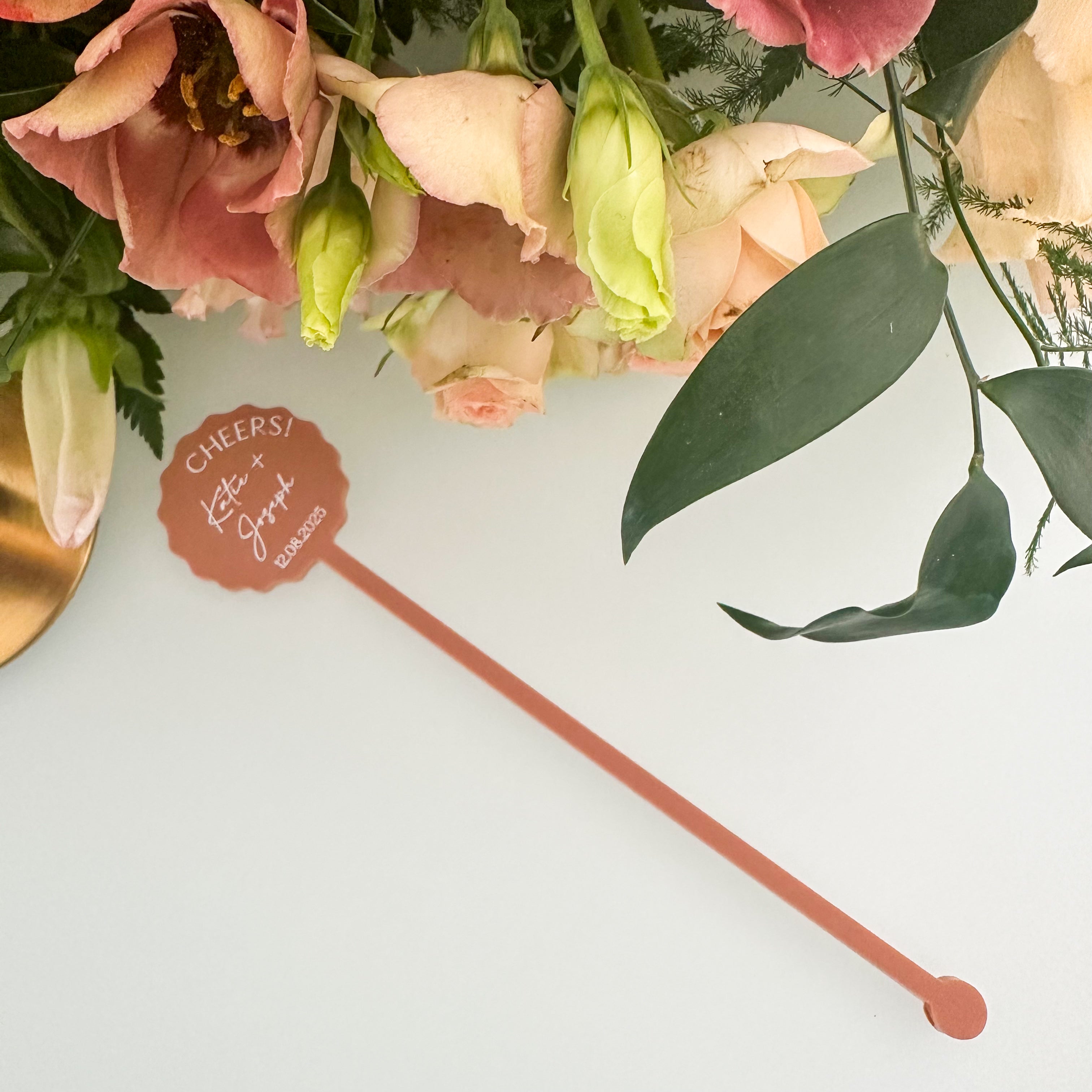 Luxury Terracotta Personalised Wedding Drinks Stirrers