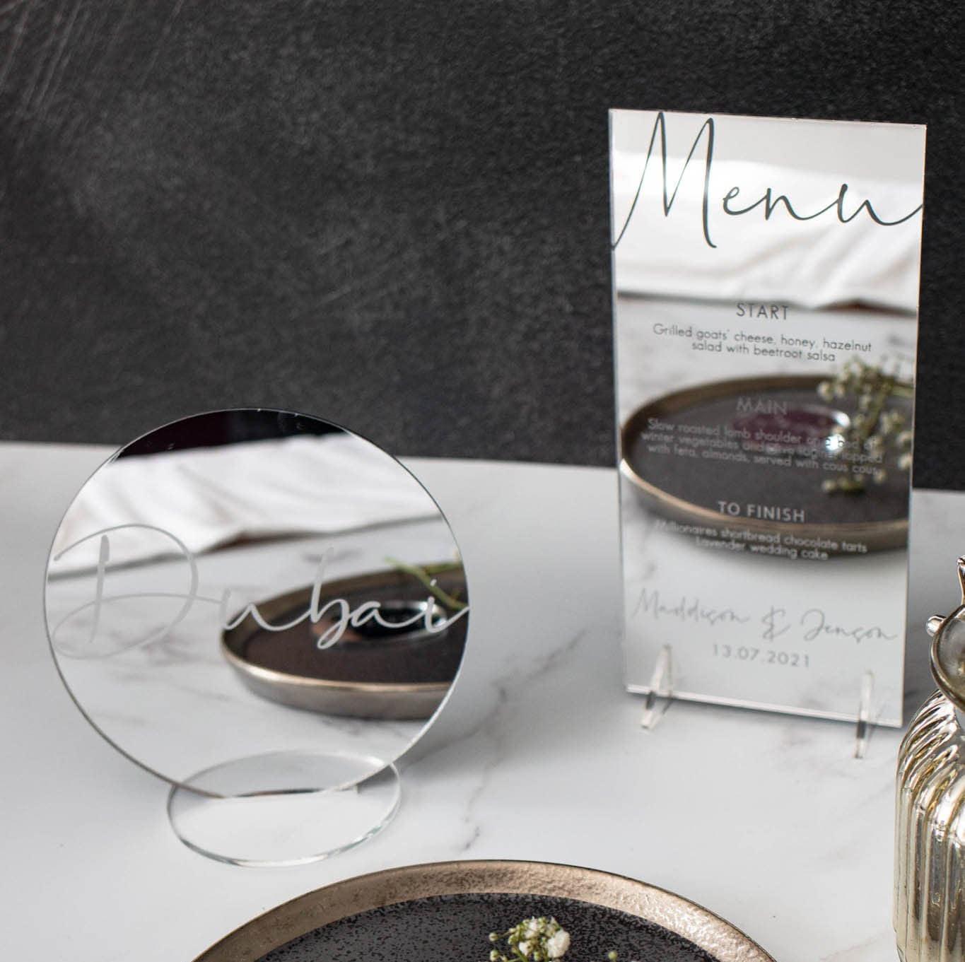 ************Add a touch of sophistication to your wedding tables with our elegant gold mirror wedding décor, expertly laser cut and engraved for a lasting impression. Each piece is designed to enhance your celebration with custom table names and numbers, crafted from premium 3mm acrylic. Whether you choose rose gold mirror or silver mirror, these banqueting table numbers bring a refined charm that guests will admire.