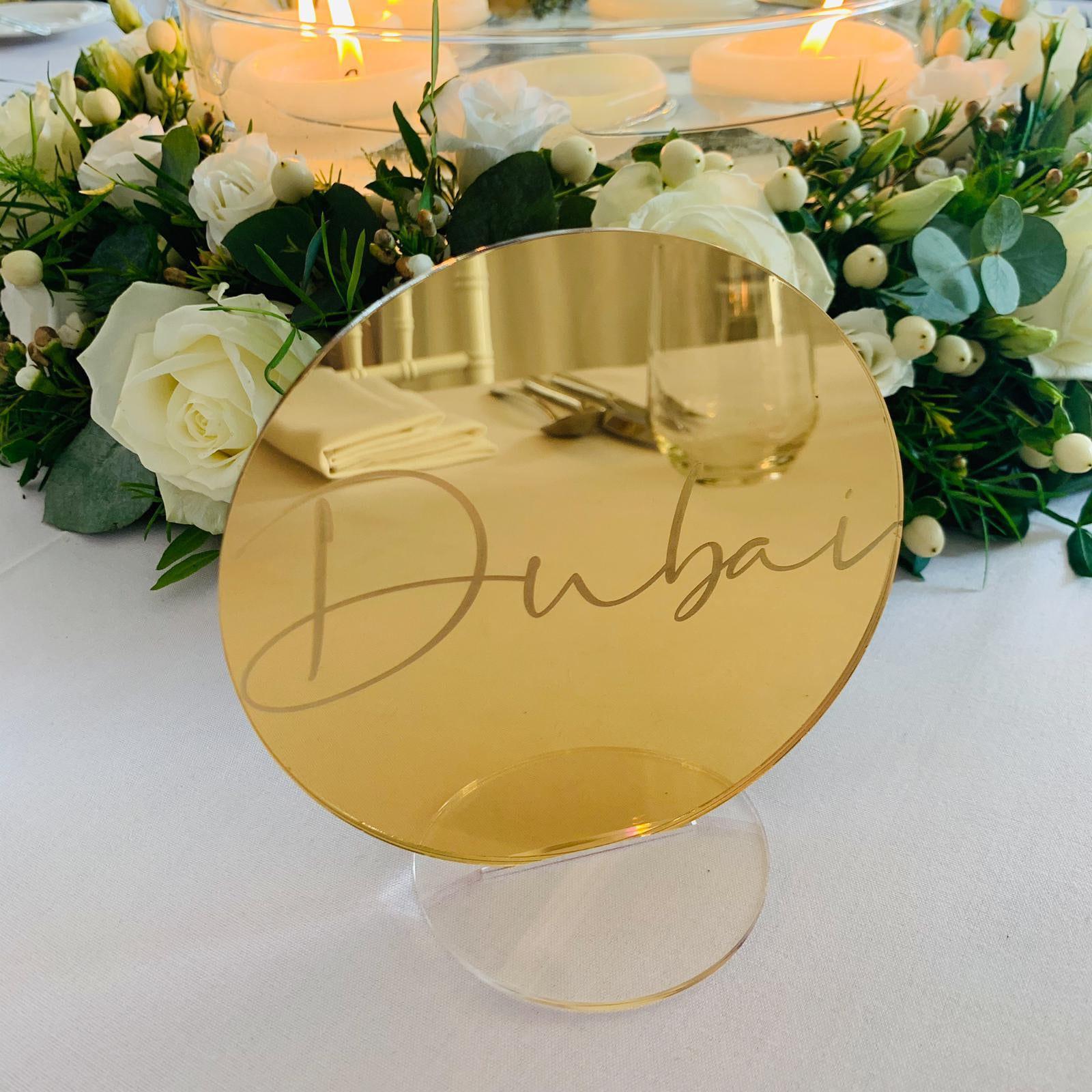 Gold Mirror Wedding Table Numbers - Custom Engraved Acrylic Circles