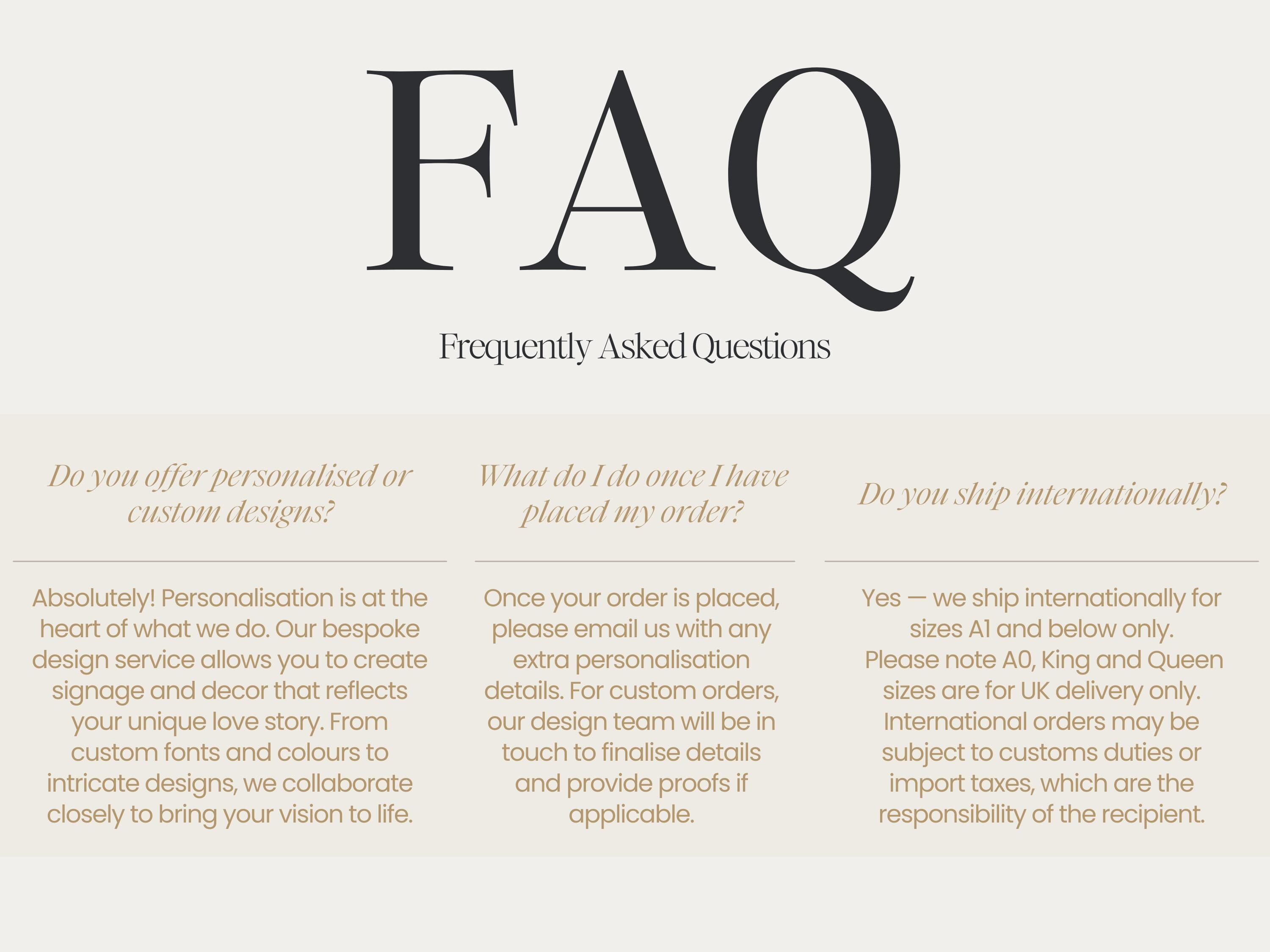 Once your order is placed, please email us with any extra personalisation details. For custom orders, our design team will be in touch to finalise details and provide proofs if applicable.