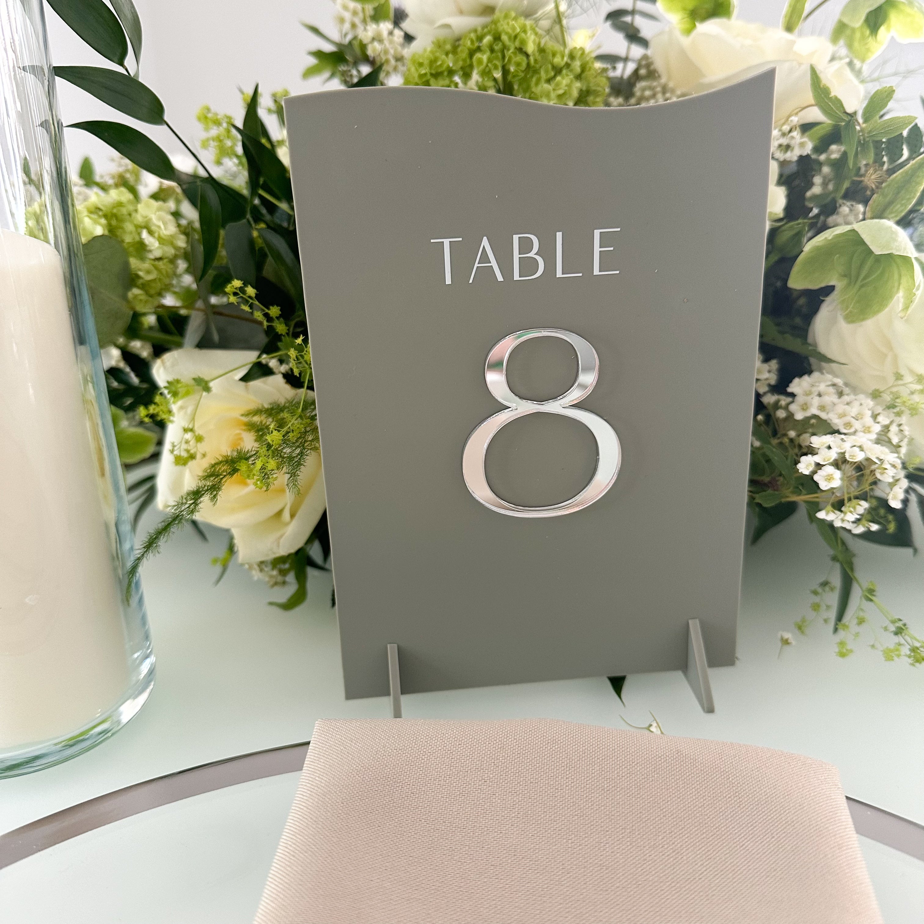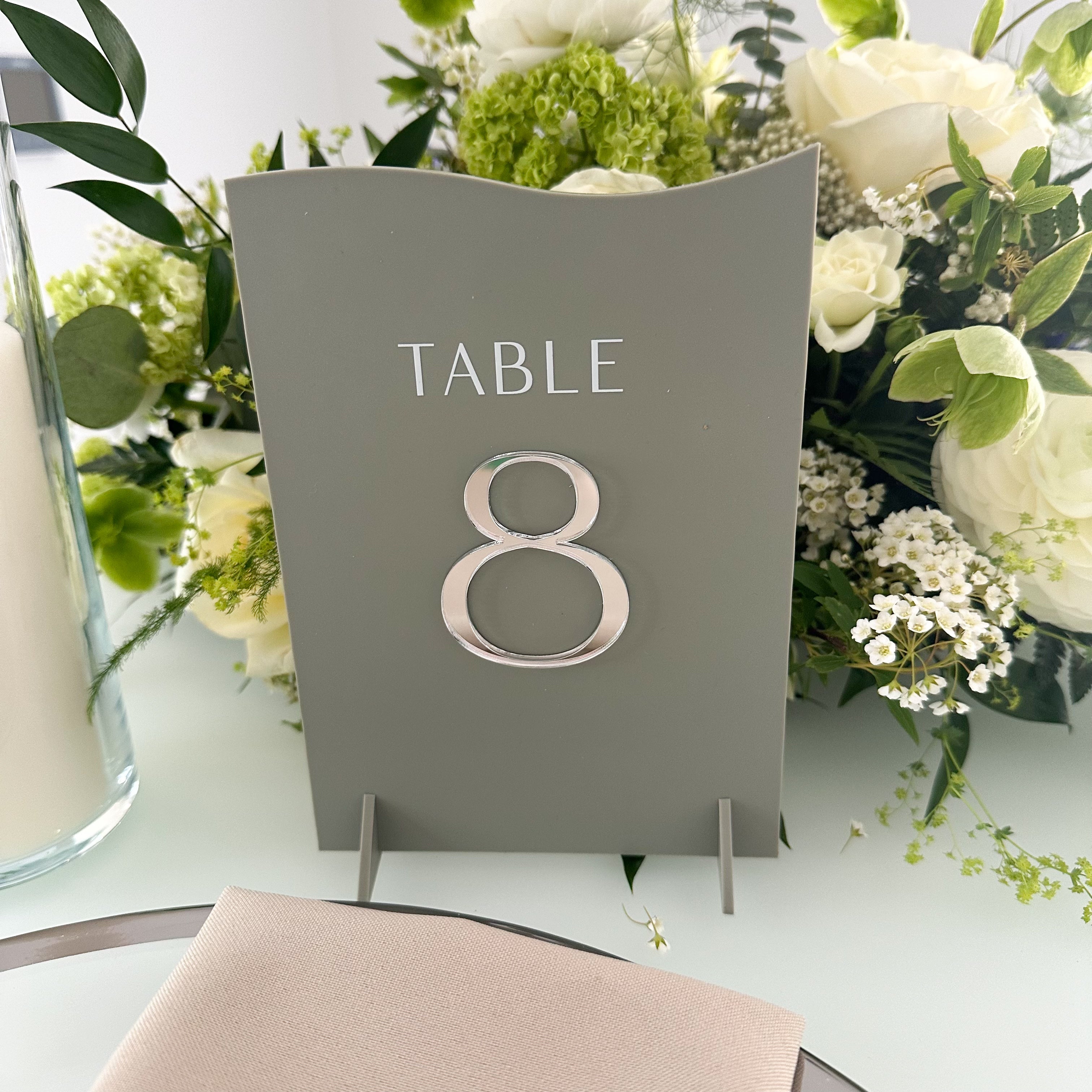 Transform your event into a captivating experience with our exquisite sage green acrylic wedding table numbers, part of the luxurious Dusk collection embellished with opulent mirror details. Choose from a range of elegant colours and shapes. Pair with our complimentary wedding décor, to create a truly memorable and sophisticated occasion. Approximate size: 140mm x 200mm /5.51 x 7.87 inches