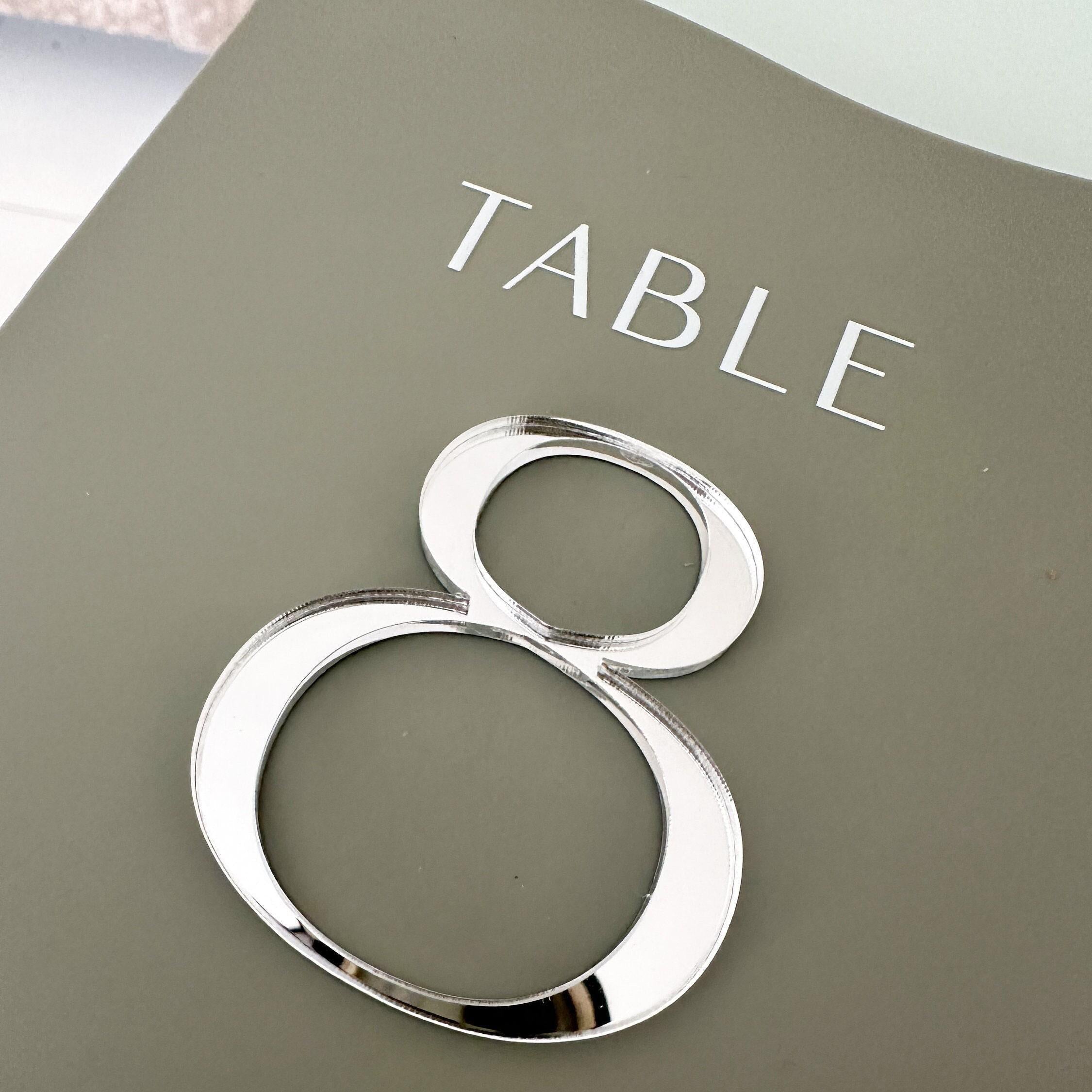 Sage Green Wedding Table Numbers - Modern Mirror Acrylic Design