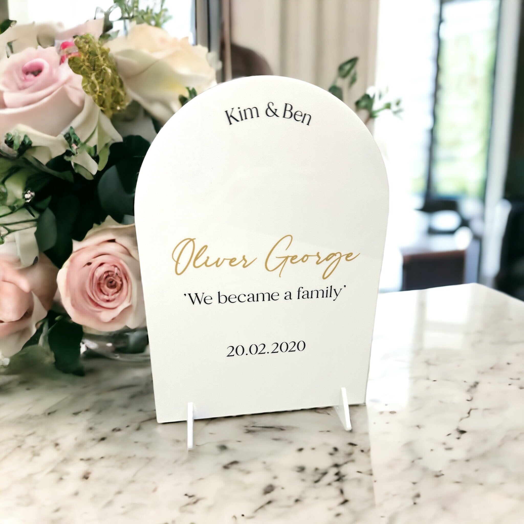 Wedding Reception Signs: Personalised White and Gold - Dome Style