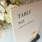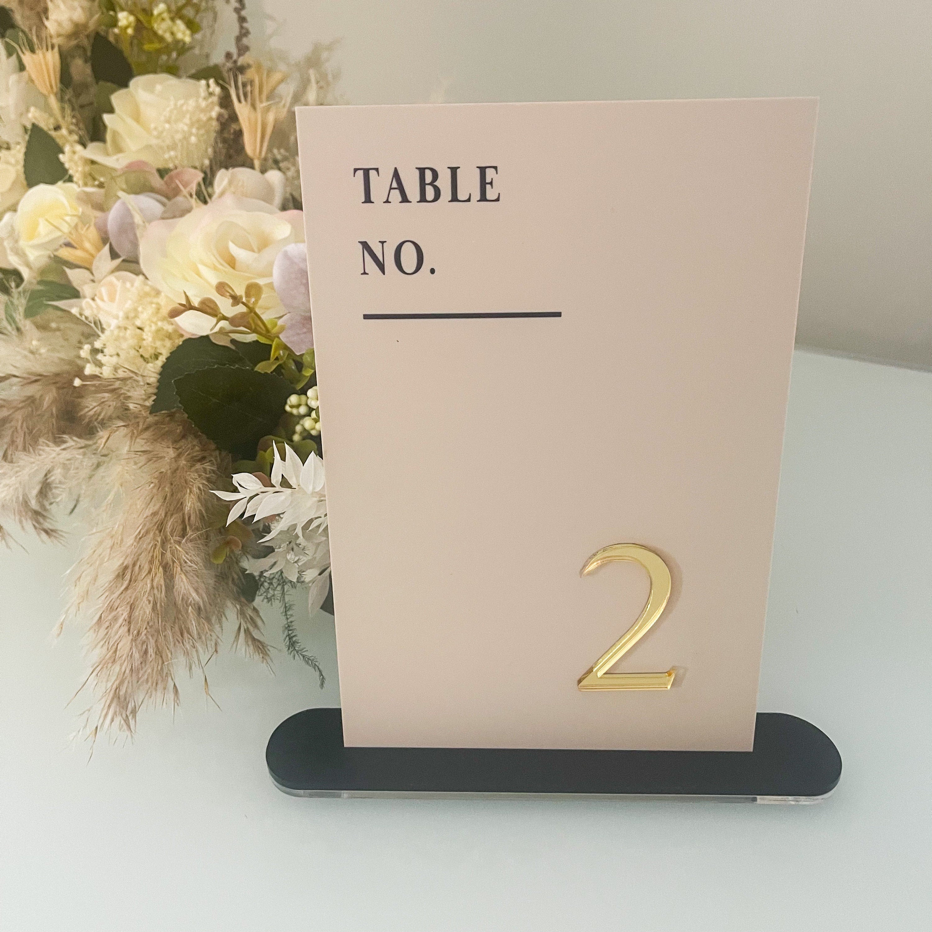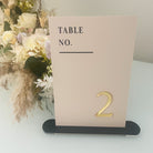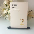 Wedding Table Numbers: Luxury Acrylic Signs (Beige & Gold, Stand)