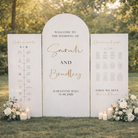 This extra large wedding trio signage improves venue functionality by keeping guests informed and comfortable throughout your celebration. The order of the day sign clearly displays the schedule; the wedding welcome sign offers a warm greeting; and the wedding table plan sign helps guests find their seats quickly—ensuring smooth flow and a memorable experience.
