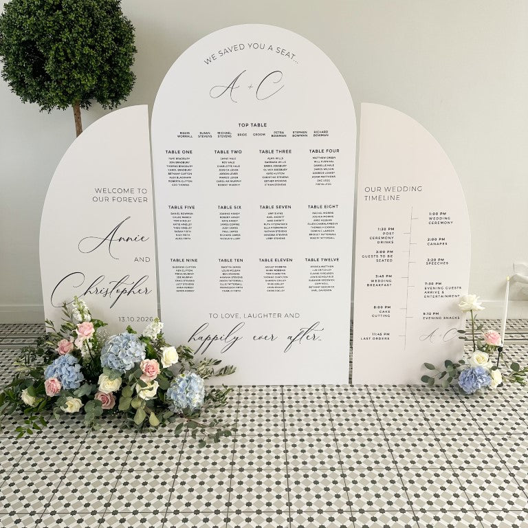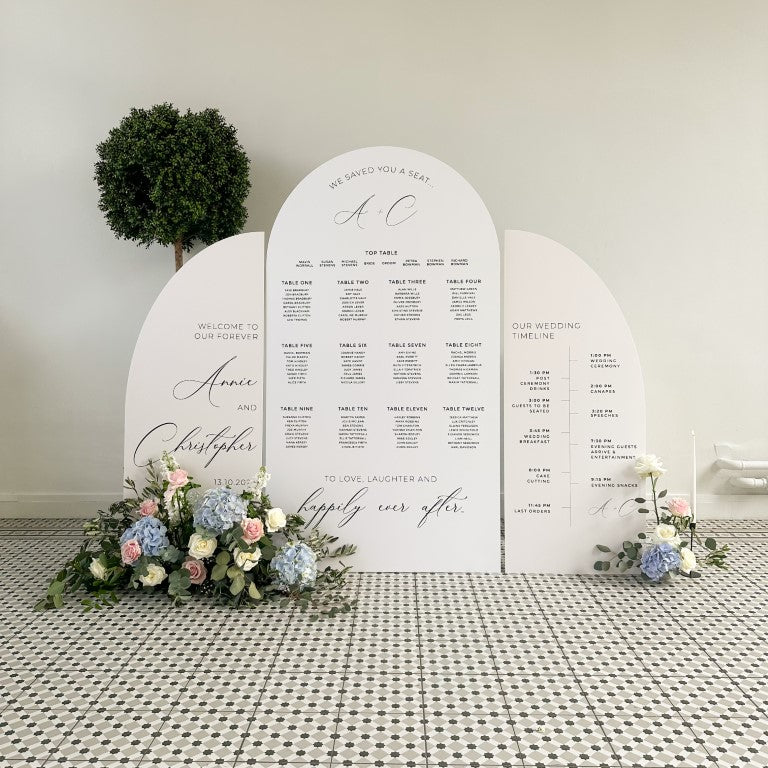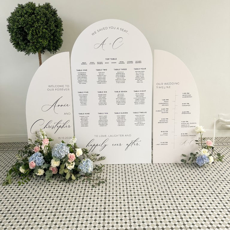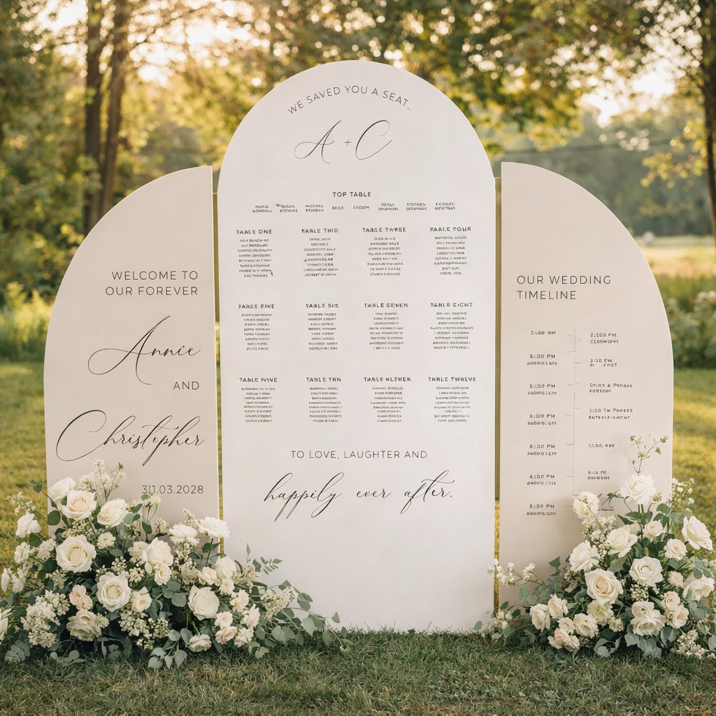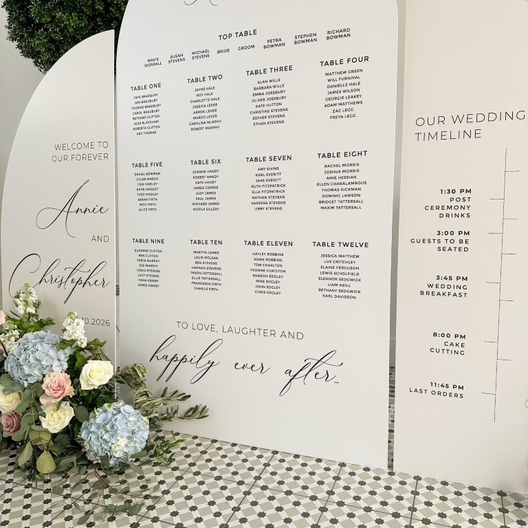 - Three essential pieces: detailed wedding table plan, welcome wedding sign, and order of the day sign for complete guest guidance