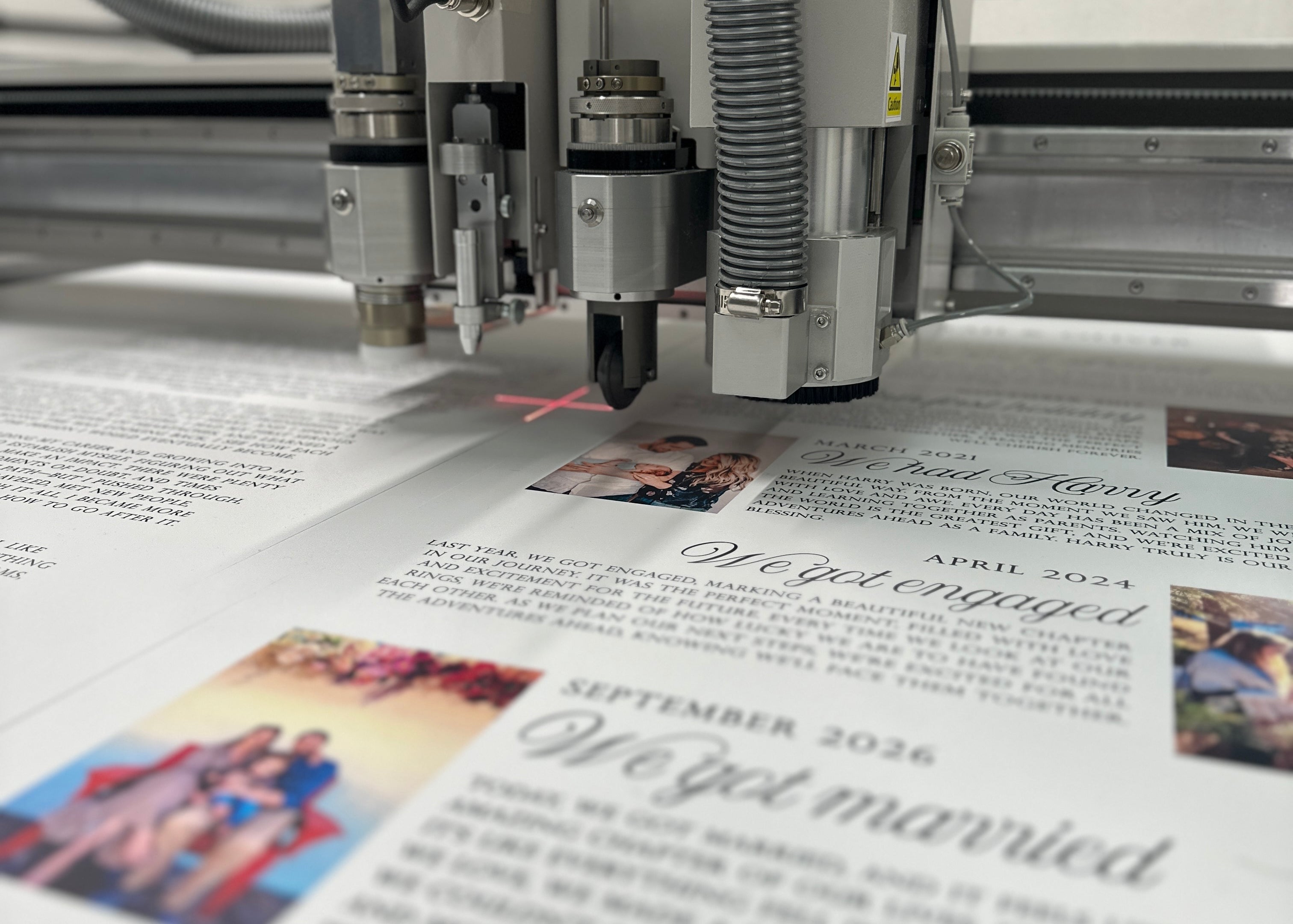 Our printing process is the first step in creating your custom wedding signage and accessories. Using high-quality printing machines, we ensure your design is printed with precision and accuracy. The result is a flawless, crisp finish that perfectly captures your vision for your special day.