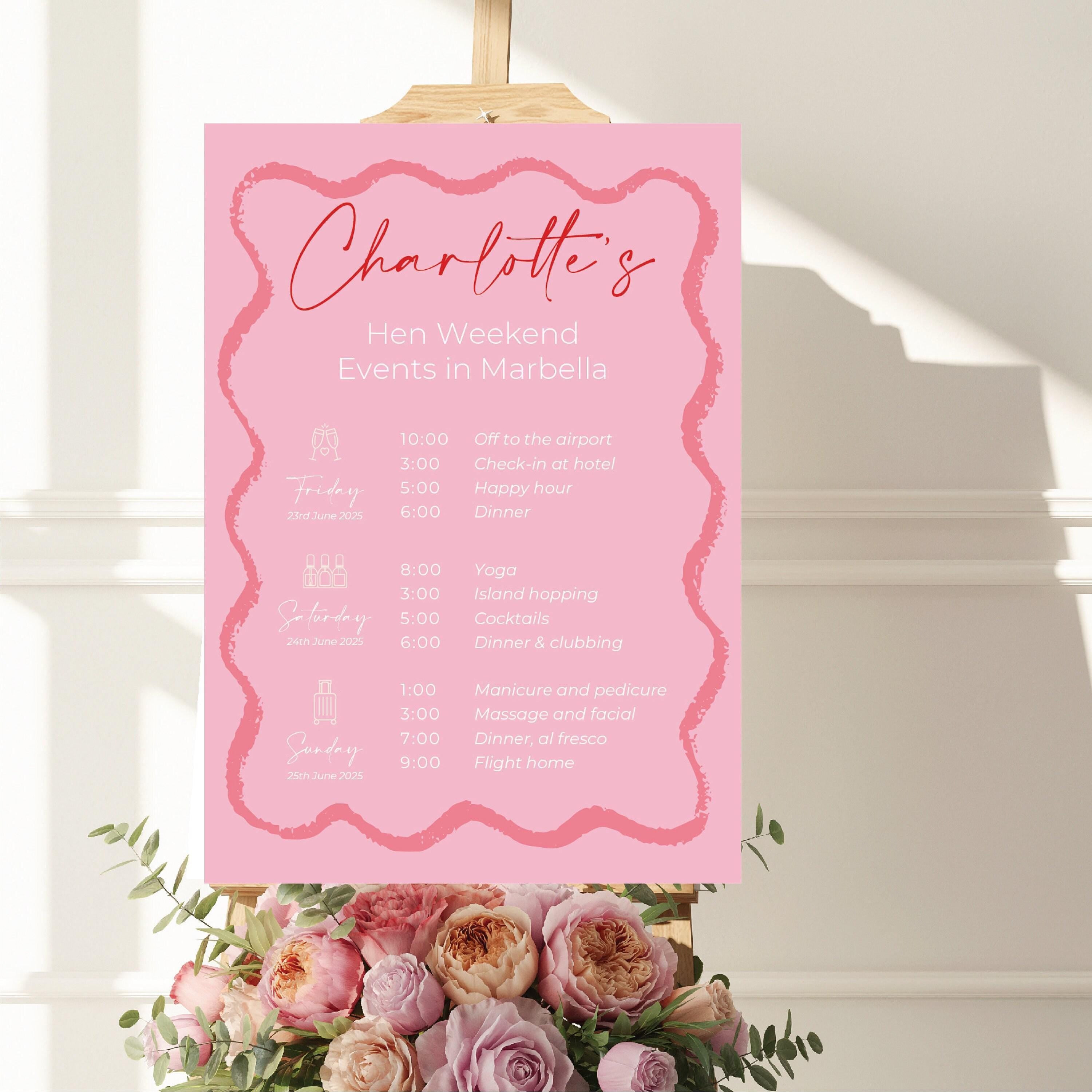 Welcome Sign Hen Party is the perfect custom decor piece to celebrate your bride tribe with style and elegance. This Welcome Sign Hen Party offers a personalized Bride To Be Sign that sets the tone for an unforgettable hen do weekend, creating a warm and festive atmosphere for every guest. Crafted as a Custom Hen Party Poster or Printed Foam Board, it combines luxury party signage with practical design to enhance your bridal shower welcome or spa weekend sign needs.